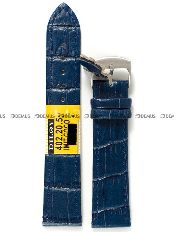 Pasek do zegarka Diloy 402.20.5, który został wykonany z naturalnej skóry. Cechą charakterystyczną tego paska jest niebieski kolor. Pasek ma długość 16 cm. Istotnym parametrem każdego paska jest jego szerokość, która w przypadku tego modelu wynosi 20 mm (18 mm przy klamerce).Parametry techniczne