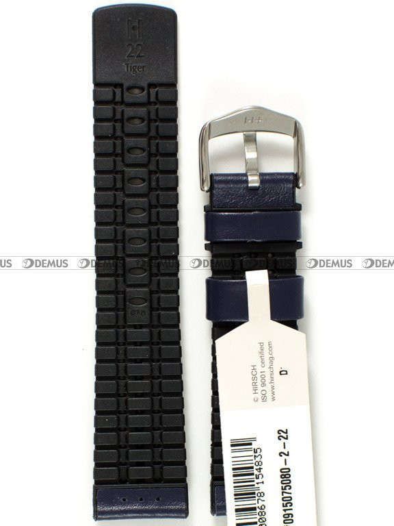 Skórzano-kauczukowy pasek do zegarka Hirsch 0915075080-2-22, 22 mm, Niebieski