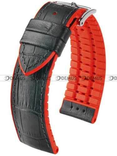 Skórzano-kauczukowy pasek do zegarka Hirsch 0922028050-2-22, 22 mm, Czarny