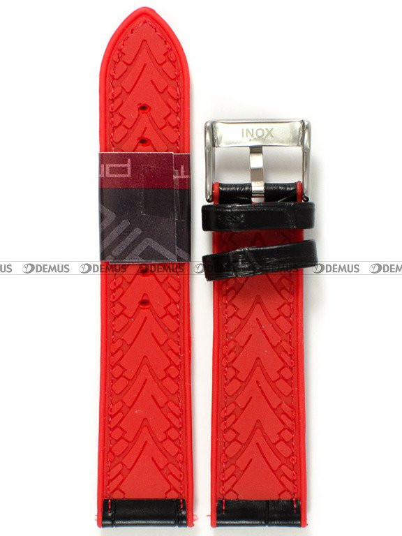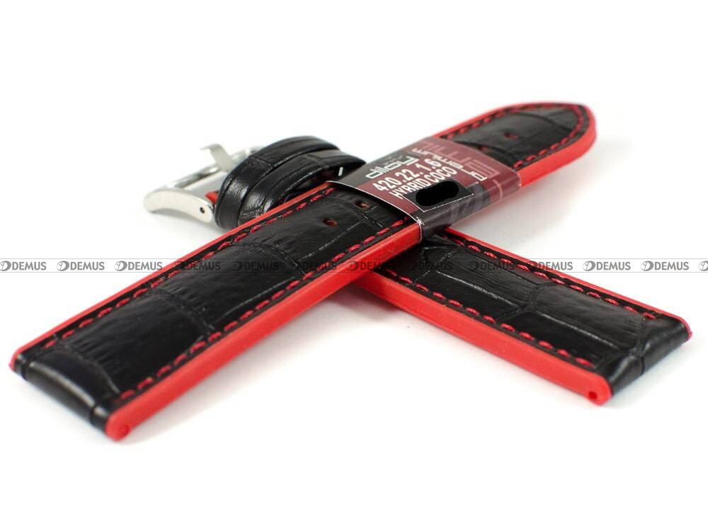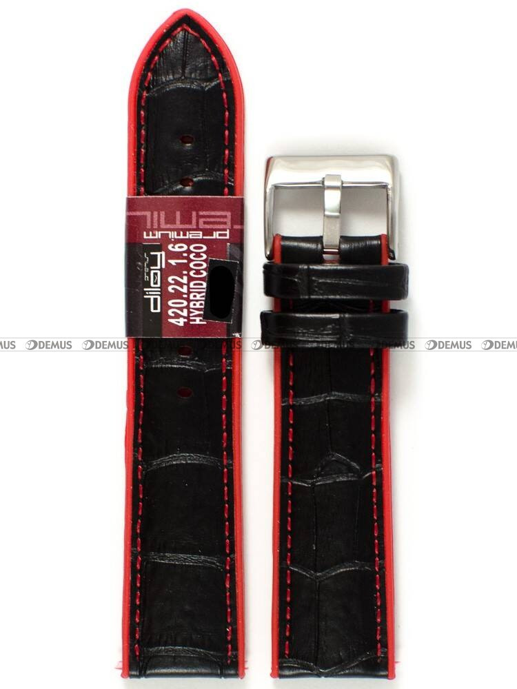Pasek do zegarka z poliuretanu pokrytego skórą Diloy 420.22.1.6, 22 mm, Czarny, Czerwony