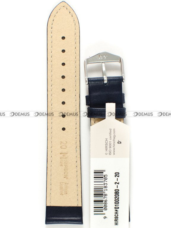 Skórzany pasek do zegarka Hirsch 01002080-2-20, 20 mm, Niebieski