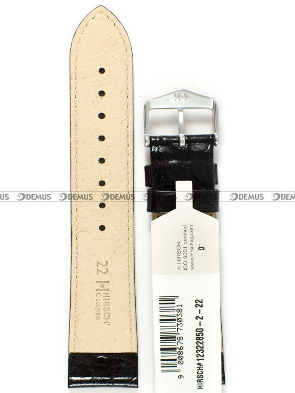 Skórzany pasek do zegarka Hirsch 12322850-2-22, 22 mm, Czarny