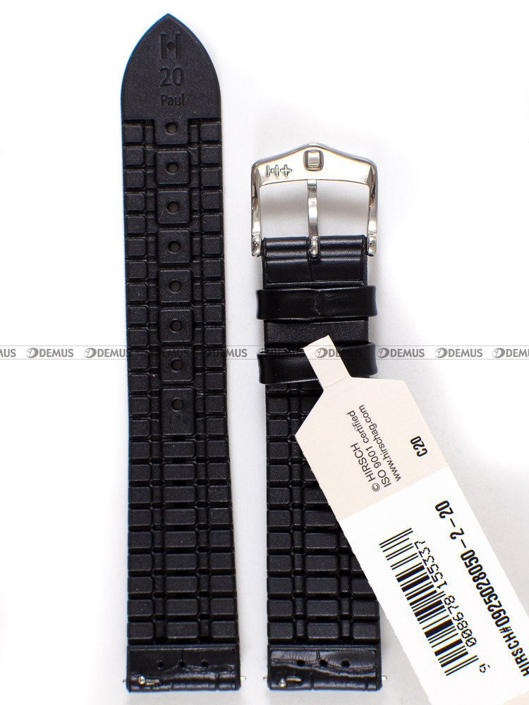 Skórzano-kauczukowy pasek do zegarka Hirsch 0925028050-2-20, 20 mm, Czarny