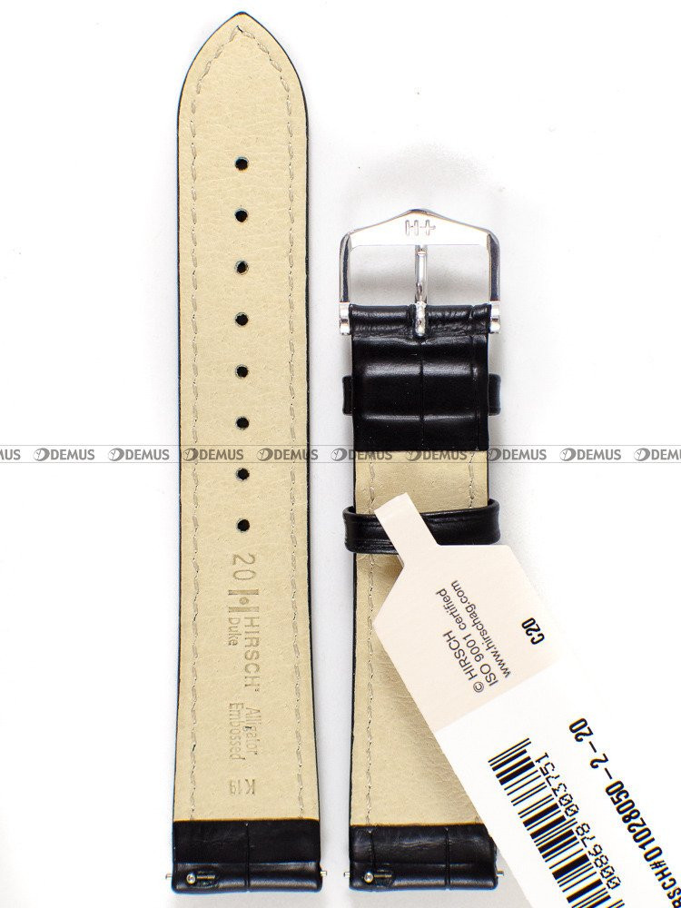Wyjątkowy pasek do zegarka Hirsch 01028050-2-20 wykonany z wygodnej, klasycznej skóry naturalnej. Produkt ma kolor czarny. Długość paska wynosi 17,5 cm liczona od klamerki do ostatniego otworu. Istotnym parametrem każdego paska jest jego szerokość, która w przypadku tego modelu wynosi 20 mm (18 mm przy klamerce).Parametry techniczne