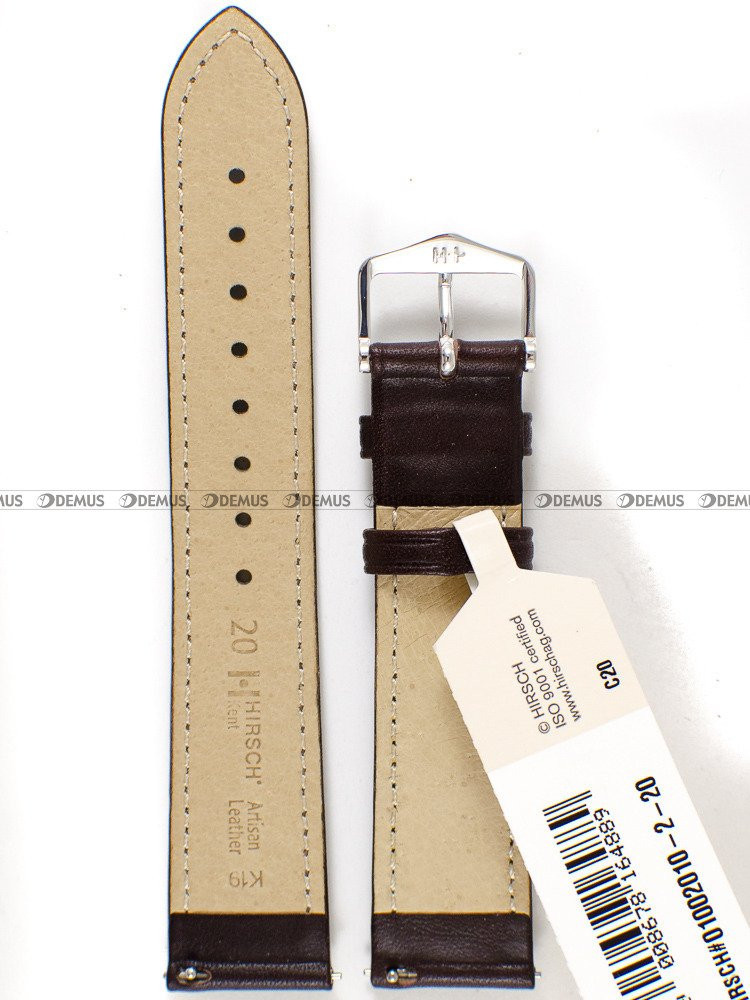 Proponujemy Państwu wyjątkowy pasek do zegarka Hirsch 01002010-2-20, który został wykonany z tradycyjnej, naturalnej skóry. Pasek ma kolor brązowy. Pasek ma długość 17 cm liczoną od klamerki do ostatniego otworu. Istotnym parametrem każdego paska jest jego szerokość, która w przypadku tego modelu wynosi 20 mm (18 mm przy klamerce).Parametry techniczne