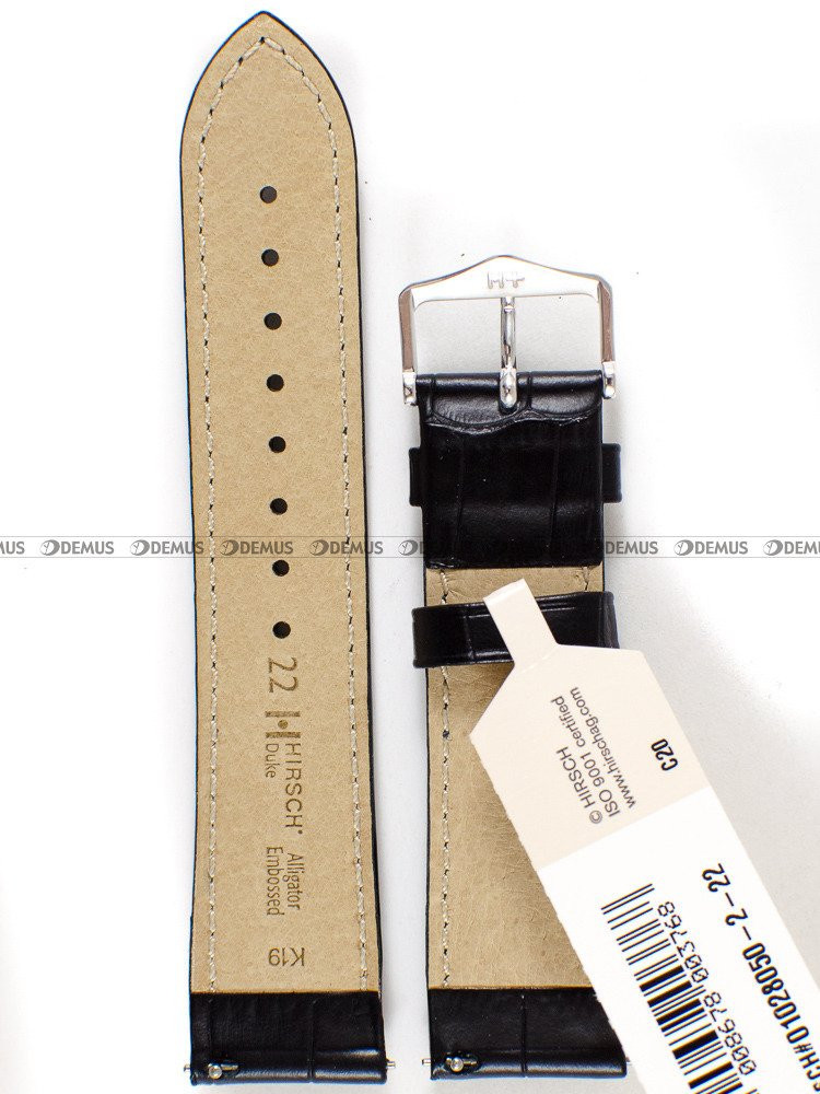 Proponujemy Państwu oryginalny pasek do zegarka Hirsch 01028050-2-22 ze skóry naturalnej. O niezwykłości tego modelu paska decyduje przede wszystkim jego czarny kolor. Długość paska to 17,5 cm liczona od klamerki do ostatniego otworu. Ważną cechą każdego paska jest jego szerokość - w tym przypadku wynosi ona 22 mm (20 mm przy klamerce).Parametry techniczne