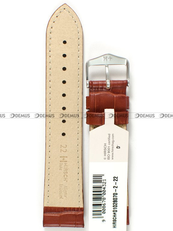 Elegancki pasek do zegarka Hirsch 01028070-2-22 z tradycyjnej, naturalnej skóry. Pasek ma kolor brązowy. Pasek ma długość 17,5 cm liczoną od klamerki do ostatniego otworu. Pasek ma szerokość 22 mm (20 mm przy klamerce).Parametry techniczne