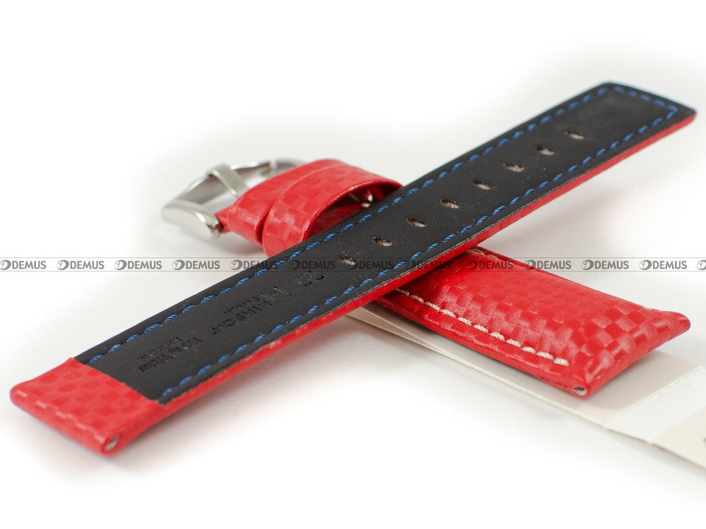 Skórzany pasek do zegarka Hirsch 02592020-2-22, 22 mm, Czerwony