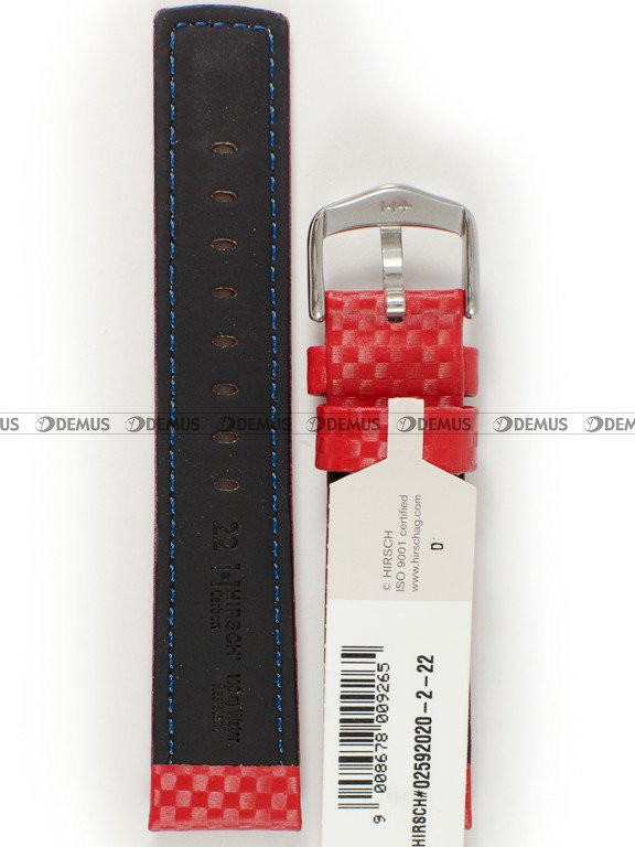 Wyjątkowy pasek do zegarka Hirsch 02592020-2-2, który został wykonany z tradycyjnej, naturalnej skóry. Produkt jest koloru czerwonego. Pasek ma długość 17,5 cm liczoną od klamerki do ostatniego otworu. Jednym z najważniejszych parametrów paska jest oczywiście jego szerokość, która w tym przypadku wynosi 22 mm (20 mm przy klamerce).Parametry techniczne