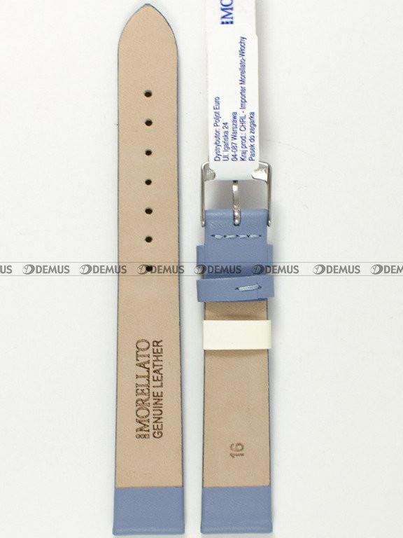 Proponujemy Państwu markowy pasek do zegarka Morellato A01X5126875066CR16, który został wykonany z naturalnej skóry. Pasek jest koloru niebieskego. Długość paska wynosi 17 cm liczona od klamerki do ostatniego otworu. Istotnym parametrem każdego paska jest jego szerokość, która w przypadku tego modelu wynosi 16 mm (14 mm przy klamerce).Parametry techniczne