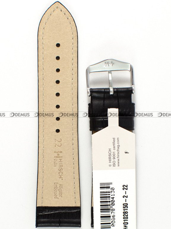 Gorąco polecamy wyjątkowy pasek do zegarka Hirsch 01028150-2-22 wykonany z wygodnej, klasycznej skóry naturalnej. Cechą charakterystyczną tego paska jest czarny kolor. Długość paska (liczona od klamerki do ostatniego otworu) to 15 cm. Istotnym parametrem każdego paska jest jego szerokość, która w przypadku tego modelu wynosi 22 mm (20 mm przy klamerce).Parametry techniczne