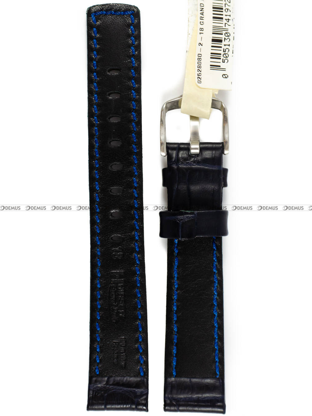 Wyjątkowy pasek do zegarka Hirsch 02528080-2-18 wykonany ze skóry naturalnej. Prezentowany pasek ma kolor granatowy. Długość paska to 17 cm (od klamerki do ostatniego otworu). Szerokość tego modelu to 18 mm (16 mm przy klamerce).Parametry techniczne