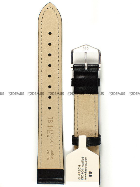 Skórzany pasek do zegarka Hirsch 01002050-2-18, 18 mm, Czarny
