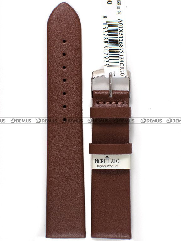 Pasek do zegarka Morellato A01X5126875134CR20 ze skóry naturalnej. Pasek ma kolor brązowy. Długość paska to 16,5 cm (od klamerki do ostatniego otworu). Szerokość tego modelu to 20 mm (18 mm przy klamerce).Parametry techniczne