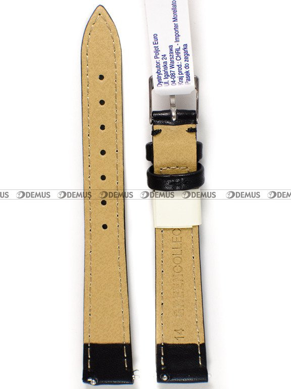 Polecamy wyjątkowy pasek do zegarka Morellato A01D5050C47019CR14, który został wykonany z odpornego na warunki atmosferyczne materiału skóropodobnego będącego jednocześnie materiałem w pełni ekologicznym. Pasek ma kolor czarny. Długość paska to 15,5 cm liczona od klamerki do ostatniego otworu. Szerokość tego modelu to 14 mm (12 mm przy klamerce).Parametry techniczne