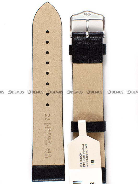 Skórzany pasek do zegarka Hirsch 14130250-2-22, 22 mm, Czarny