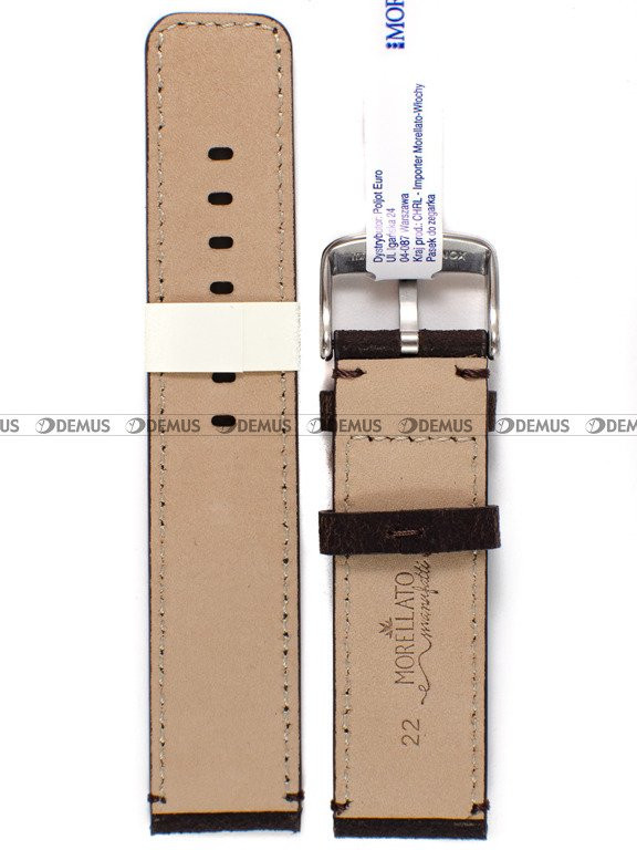 Gorąco polecamy markowy pasek do zegarka Morellato A01X5189B76032CR22 wykonany ze skóry naturalnej. Pasek jest koloru brązowego. Długość paska to 16,5 cm liczona od klamerki do ostatniego otworu. Jednym z najważniejszych parametrów paska jest oczywiście jego szerokość, która w tym przypadku wynosi 22 mm.Parametry techniczne