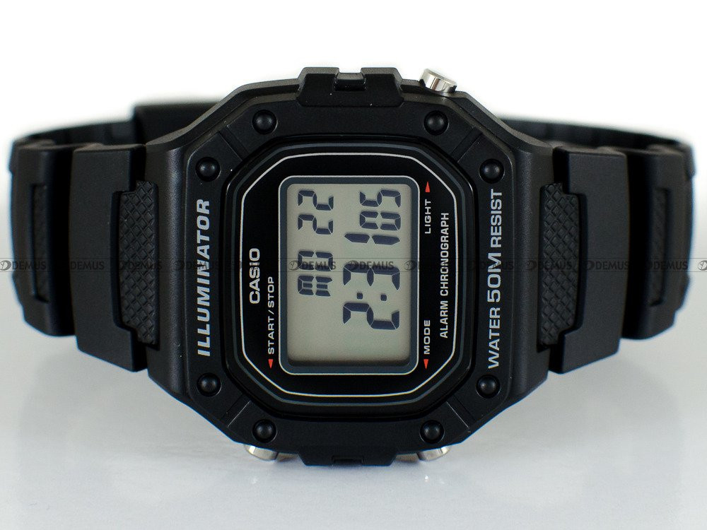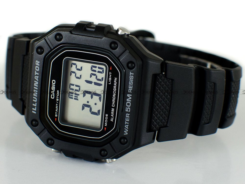 Zachęcamy Państwa do zapoznania się z ofertą tego modelu - męski Casio Sport Electronic W-218H-1AVEF to idealny pomysł na prezent głównie dla Panów ceniących sobie elegancję i styl. Wygodę w codziennym użytkowaniu zapewnia pasek z tworzywa. Urządzenie jest napędzane przez niezawodny mechanizm kwarcowy. Prostokątna, koperta z tworzywa idealnie pasuje do tego modelu. O najwyższej jakości zegarka świadczy m.in. klasa wodoodporności WR50. Elektroniczna tarcza z pewnością przypadnie do gustu właścicielowi tego zegarka. Zegarek pokazuje czas w trybie 12- oraz 24-godzinnym. Urządzenie oferuje datownik wskazujący aktualny dzień miesiąca, dzień tygodnia i nazwę dnia. Do podświetlenia tarczy użyto technologii LED. Tarcza urządzenia jest chroniona przez odporne na zarysowania i stłuczenia szkło heksalitowe.Atutem zegarka Casio Sport Electronic W-218H-1AVEF jest funkcja kalendarza automatycznego. Zegarek wyposażono w budzik. Z myślą o sportowcach i osobach aktywnych fizycznie zegarek wyposażono w 1-godzinny stoper z dokładnością do 1/100 sekundy.