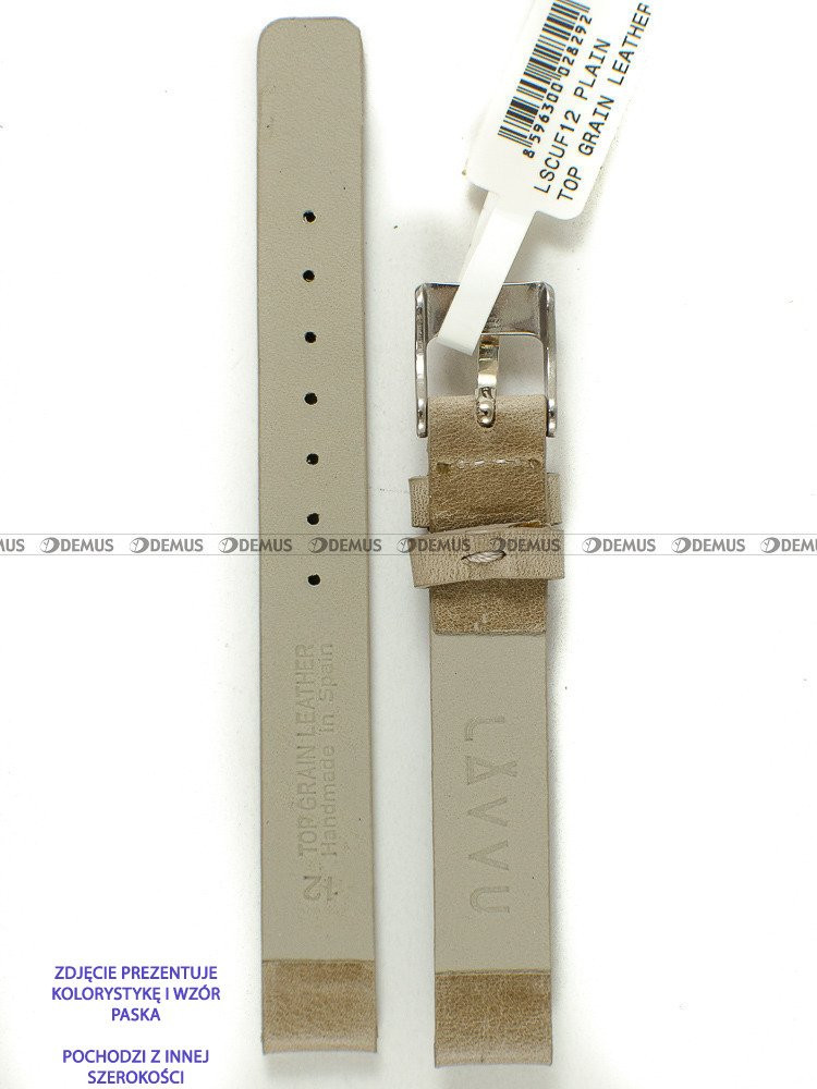 Pasek do zegarka LAVVU LSCUF16 ze skóry naturalnej. Prezentowany pasek ma kolor beżowy. Pasek ma długość 16,5 cm liczoną od klamerki do ostatniego otworu. Pasek ma szerokość 16 mm.Parametry techniczne