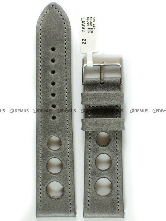 Skórzany pasek do zegarka LAVVU LSMUA22, 22 mm, Popielaty