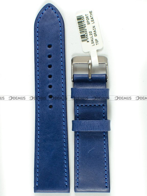 Skórzany pasek do zegarka LAVVU LSAUL22, 22 mm, Niebieski