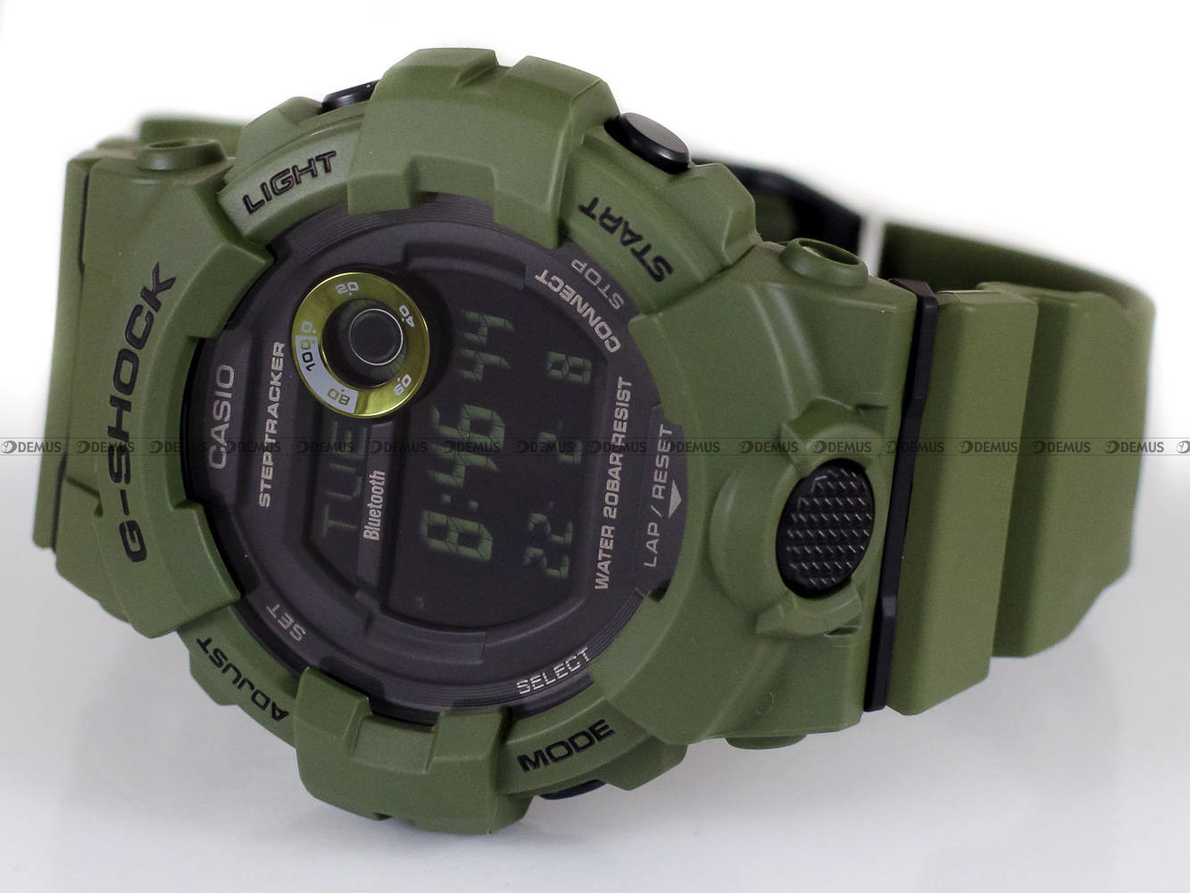 Wyjątkowy zegarek męski Casio G-SHOCK GBD-800UC-3ER to propozycja przede wszystkim dla Panów, którzy lubią podkreślić swój styl pięknym i funkcjonalnym gadżetem. Pięknym uzupełnieniem całości jest pasek z tworzywa. Urządzenie jest napędzane przez mechanizm kwarcowy. Okrągła, koperta z tworzywa zapewnia bezpieczeństwo i wygodę. Producent gwarantuje klasę wodoszczelności na poziomie WR200. Elektroniczny, Czarna, elektroniczna tarcza z pewnością przypadnie do gustu właścicielowi tego zegarka. Godzina jest pokazywana w zarówno w trybie 24-godzinnym, jak i tradycyjnym trybie 12-godzinnym. Ważną cechą tego zegarka jest technologia AUTO LED wykorzystana do podświetlenia tarczy. Tarcza zegarka jest chroniona przez odporne na zarysowania i stłuczenia szkło mineralne. Zegarek wyposażono w funkcję kalendarza automatycznego. Urządzenie wyposażono w budzik z możliwością ustawienia pięciu niezależnych alarmów na różne dni i godziny. Wielu użytkowników zapewne doceni timer 5x 60 minut.Parametry techniczne