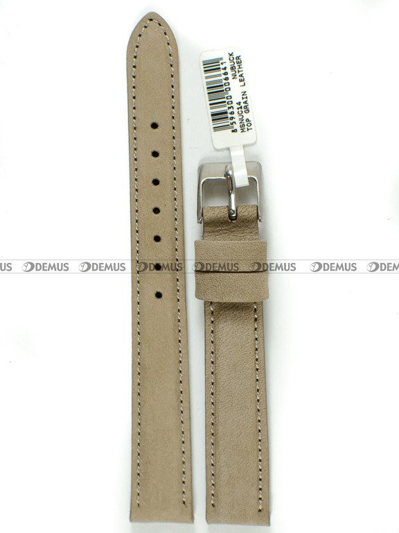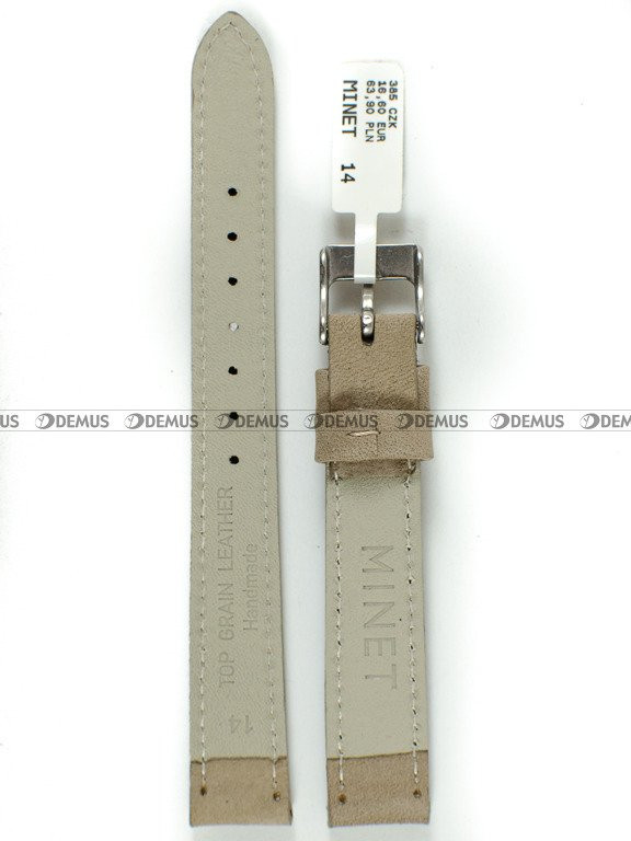 Proponujemy Państwu wyjątkowy pasek do zegarka Minet MSNUC14 wykonany z tradycyjnej, naturalnej skóry. O niezwykłości tego modelu paska decyduje przede wszystkim jego brązowy kolor. Pasek ma długość 15,5 cm. Ważną cechą każdego paska jest jego szerokość - w tym przypadku wynosi ona 14 mm (12 mm przy klamerce).Parametry techniczne