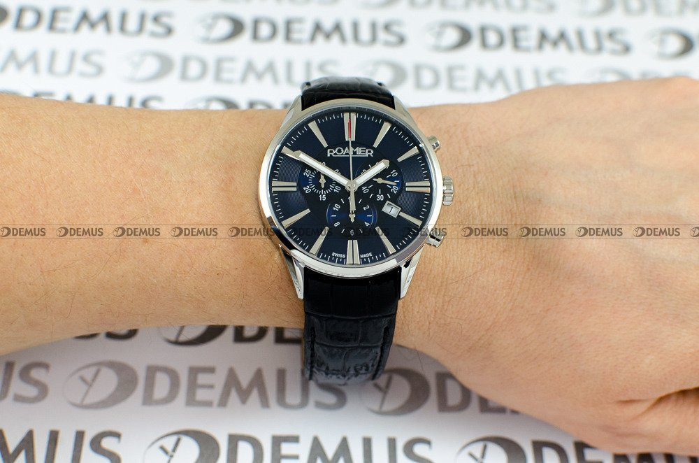 Zachęcamy Państwa do zapoznania się z ofertą tego wyjątkowego zegarka - Roamer 508837 41 45 05 to wprost idealny gadżet głównie dla Panów, którzy cenią sobie elegancję i szyk. Pięknym uzupełnieniem całości jest skórzany pasek. Sercem tego modelu jest niezawodny mechanizm kwarcowy. Okrągła, stalowa koperta skutecznie chroni mechanizm i jednocześnie gwarantuje odpowiedni komfort. Klasyczna, wskazówkowa tarcza w kolorze niebieskim podkreśla ekskluzywny charakter tego modelu. Zegarek został dodatkowo wyposażony w datownik pokazujący dzień miesiąca. Zastosowany w tym modelu chronograf może mierzyć czas do 0,5 godziny z dokładnością do jednej dziesiątej sekundy. Do ochrony tarczy zegarka wykorzystano odporne na zarysowania i stłuczenia szkło szafirowe.Parametry techniczne
