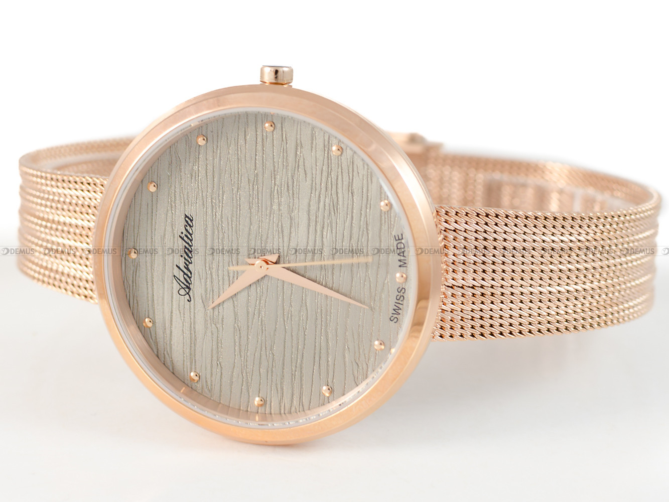 Polecamy oryginalny zegarek Adriatica Ladies fashion A3716.9147Q dla Pań, które lubią podkreślić swój styl pięknym i funkcjonalnym gadżetem. Istotnym aspektem decydującym o wyglądzie urządzenia jest siateczkowa - Mesh, pozłacana bransoleta. Model ten jest napędzany przez mechanizm kwarcowy. Okrągła, stalowa - pozłacana koperta wprost idealnie pasuje do tego modelu. Szara, wskazówkowa tarcza jest elementem wyróżniającym ten model spośród innych zegarków. Tarcza urządzenia jest chroniona przez odporne na zarysowania i stłuczenia szkiełko mineralne.Parametry techniczne