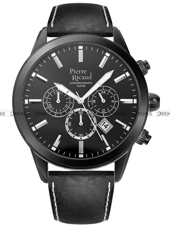 Nowość w ofercie - zegarek męski Pierre Ricaud P97010.B214CH to produkt zaprojektowany głównie dla Panów, którzy dbają o każdy szczegół w swoim stylu. Istotnym aspektem decydującym o wyglądzie zegarka jest skórzany pasek. Zegarek jest napędzany przez sprawdzony mechanizm kwarcowy. Okrągła, stalowa koperta zapewnia bezpieczeństwo i wygodę. Zegarek został dodatkowo uszczelniony za pomocą zakręcanego dekla. Wysoka jakość wykonania znajduje potwierdzenie w klasie wodoodporności WR100.Czarna, wskazówkowa tarcza to połączenie stylu i funkcjonalności. Widoczny na tarczy chronograf mierzy czas do 12h z dokładnością do 1 sekundy. Tarcza urządzenia jest chroniona przez szkiełko mineralne, które zapewnia wysoką odporność na zarysowanie i stłuczenie.