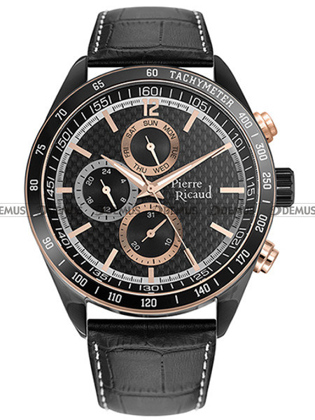 Gorąco polecamy wyjątkowy zegarek męski Pierre Ricaud P97224.B2R4QF dla aktywnych Panów, którzy cenią sobie funkcjonalność i wygodę. Wygodę w codziennym użytkowaniu zapewnia skórzany pasek. Sercem tego modelu jest ceniony za niezawodność mechanizm kwarcowy zasilany baterią. Stalowa koperta świetnie sprawdza się w codziennym użytkowaniu. Zegarek cechuje się klasą wodoodporności WR100. Czarna, wskazówkowa tarcza podkreśla ekskluzywny charakter tego modelu. Urządzenie prezentuje czas w tradycyjnym trybie 12-godzinnym oraz coraz bardziej popularnym trybie 24-godzinnym. Zegarek został dodatkowo wyposażony w datownik pokazujący dzień miesiąca i dzień tygodnia. Tarcza zegarka jest chroniona przez odporne na zarysowania i stłuczenia szkło mineralne.Parametry techniczne
