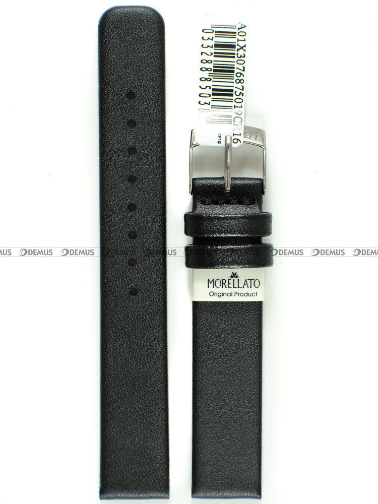 Markowy pasek do zegarka Morellato A01X3076875019CR16, który został wykonany ze skóry naturalnej. Produkt ma kolor czarny. Długość paska od klamerki do ostatniego otworu wynosi 16 cm. Jednym z najważniejszych parametrów paska jest oczywiście jego szerokość, która w tym przypadku wynosi 16 mm.Parametry techniczne
