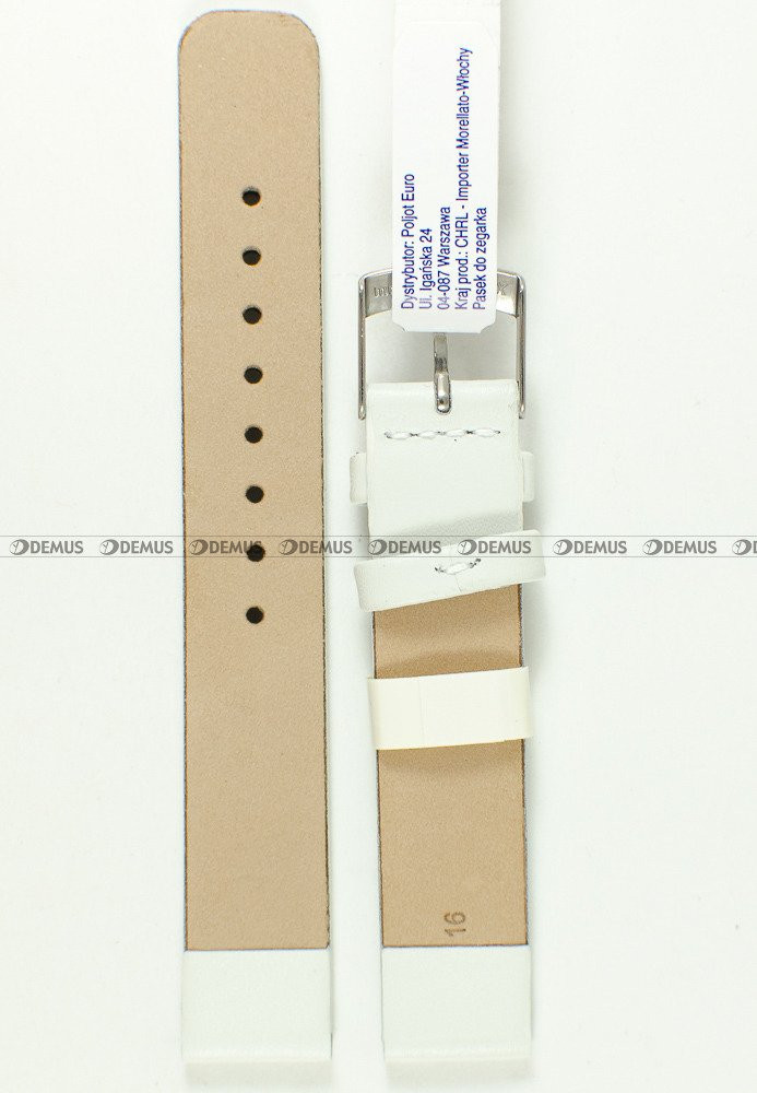 Proponujemy Państwu markowy pasek do zegarka Morellato A01X3076875017CR16 wykonany z wygodnej, klasycznej skóry naturalnej. O niezwykłości tego modelu paska decyduje przede wszystkim jego biały kolor. Pasek ma długość 16 cm. Szerokość paska wynosi 16 mm.Parametry techniczne