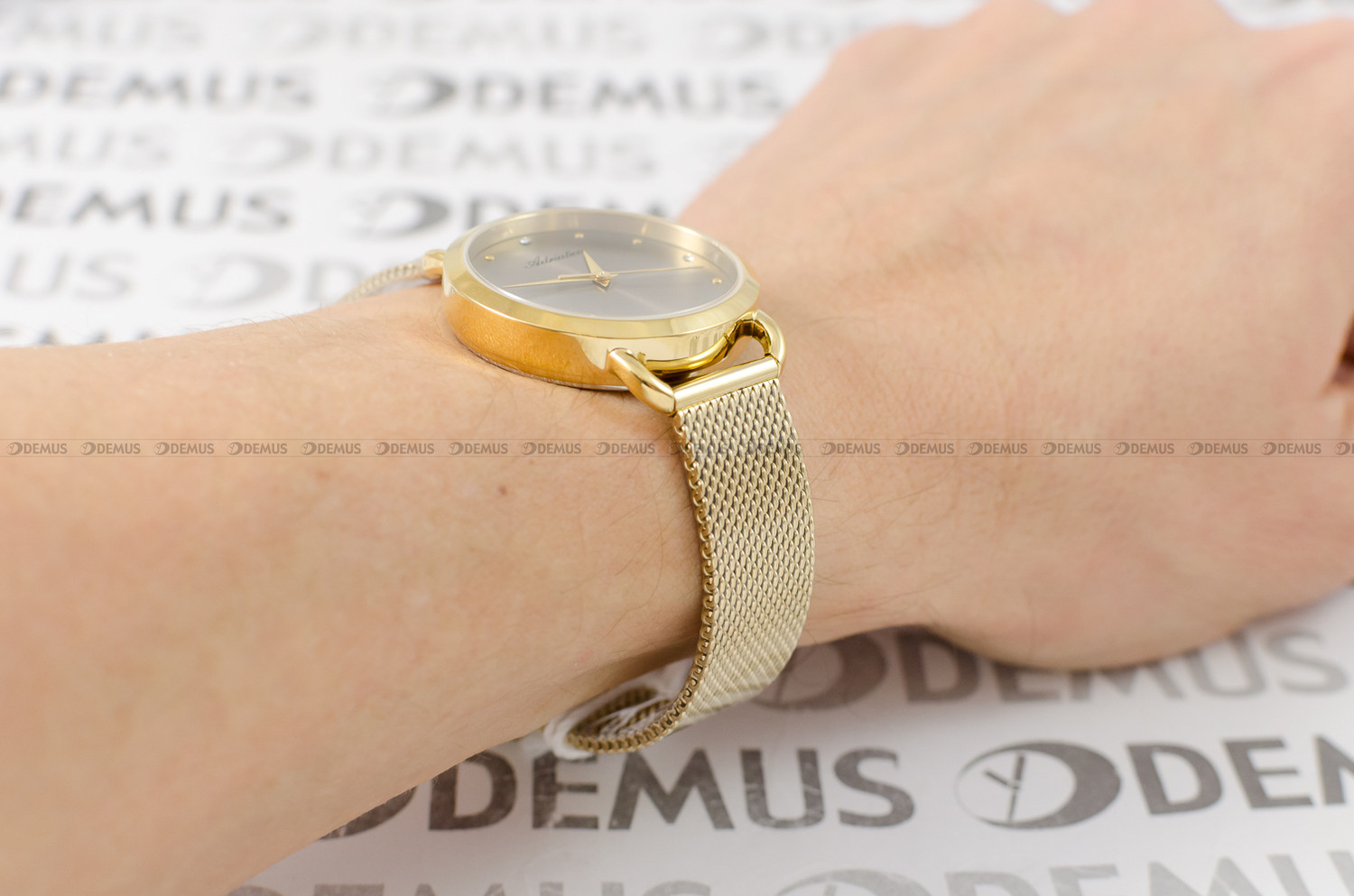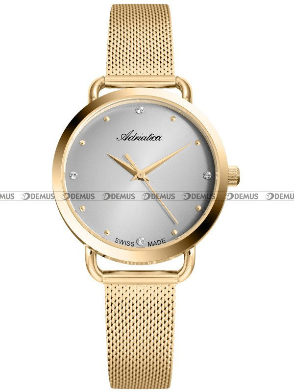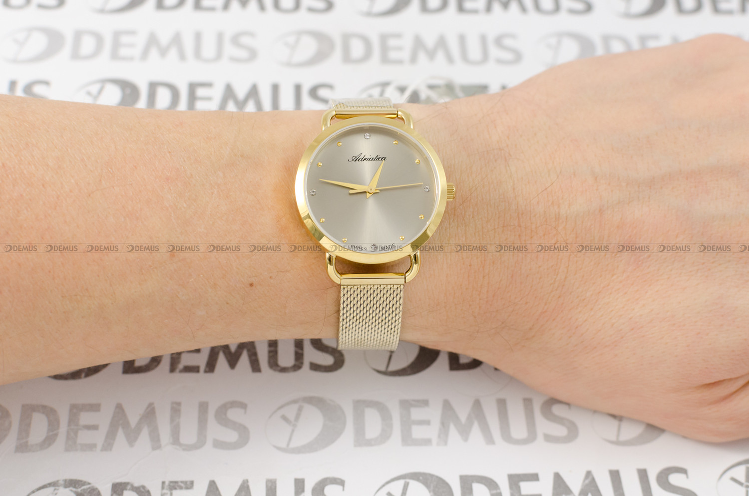 Oryginalny zegarek damski Adriatica Ladies fashion A3730.1147Q to produkt przeznaczony przede wszystkim dla Pań, które lubią podkreślić swój niepowtarzalny styl szykownym dodatkiem. Pięknym uzupełnieniem całości jest siateczkowa - Mesh, pozłacana bransoleta. Model ten jest napędzany przez mechanizm kwarcowy zasilany baterią. Okrągła, stalowa - pozłacana koperta jest najlepszą gwarancją trwałości tego zegarka. Popielata, wskazówkowa tarcza wysadzana kryształkami, Wykonana z masy perłowej bardzo dobrze pasuje do całej konstrukcji. Tarcza zegarka jest chroniona przez odporne na zarysowania i stłuczenia szkło mineralne.Parametry techniczne