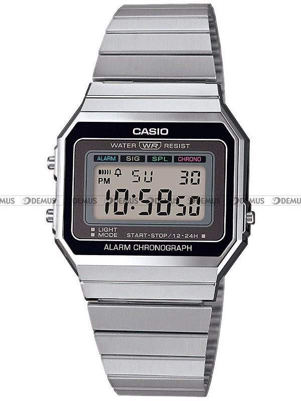 Zachęcamy Państwa do zapoznania się z ofertą tego zegarka - Casio RETRO A168WEM-7EF to model przeznaczony dla wszystkich osób lubiących szykowne dodatki. Ważnym elementem wykończenia zegarka jest stalowa, pozłacana bransoleta. Sercem tego modelu jest sprawdzony mechanizm kwarcowy. Koperta z tworzywa świetnie sprawdza się w codziennym użytkowaniu.Elektroniczna tarcza z pewnością przypadnie do gustu właścicielowi tego zegarka. Urządzenie prezentuje czas w tradycyjnym trybie 12-godzinnym, a także w trybie 24-godzinnym. Datownik pokazuje aktualny dzień miesiąca, dzień tygodnia i nazwę miesiąca. Ważną cechą tego zegarka jest technologia EL Backlight wykorzystana do podświetlenia tarczy. Do ochrony tarczy zegarka wykorzystano odporne na zarysowania i stłuczenia szkiełko heksalitowe. Zegarek wyposażono w funkcję automatycznego kalendarza. Urządzenie zostało wyposażone w prosty budzik.