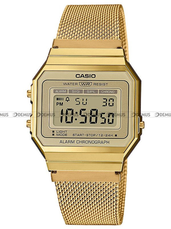 Zachęcamy Państwa do zapoznania się z ofertą tego zegarka - Casio RETRO A168WEM-7EF to model przeznaczony dla wszystkich osób lubiących szykowne dodatki. Ważnym elementem wykończenia zegarka jest stalowa, pozłacana bransoleta. Sercem tego modelu jest sprawdzony mechanizm kwarcowy. Koperta z tworzywa świetnie sprawdza się w codziennym użytkowaniu.Elektroniczna tarcza z pewnością przypadnie do gustu właścicielowi tego zegarka. Urządzenie prezentuje czas w tradycyjnym trybie 12-godzinnym, a także w trybie 24-godzinnym. Datownik pokazuje aktualny dzień miesiąca, dzień tygodnia i nazwę miesiąca. Ważną cechą tego zegarka jest technologia EL Backlight wykorzystana do podświetlenia tarczy. Do ochrony tarczy zegarka wykorzystano odporne na zarysowania i stłuczenia szkiełko heksalitowe. Zegarek wyposażono w funkcję automatycznego kalendarza. Urządzenie zostało wyposażone w prosty budzik.