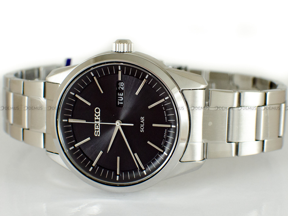 Zachęcamy Państwa do zapoznania się z ofertą tego zegarka - męski Seiko Solar SNE527P1 to wprost idealny gadżet głównie dla Panów, którzy dbają o każdy szczegół w swoim stylu. Ważnym elementem wykończenia zegarka jest stalowa bransoleta. Sercem tego zegarka jest sprawdzony mechanizm kwarcowy - solar. Okrągła, stalowa koperta to najlepsza gwarancja trwałości tego modelu. Zegarek został dodatkowo uszczelniony przez wykorzystanie zakręcanego dekla. O najwyższej jakości zegarka świadczy m.in. klasa wodoodporności WR100.Czarna, wskazówkowa tarcza podkreśla ekskluzywny charakter tego modelu. Tarcza zegarka jest chroniona przez odporne na zarysowania i stłuczenia szkło szafirowe.