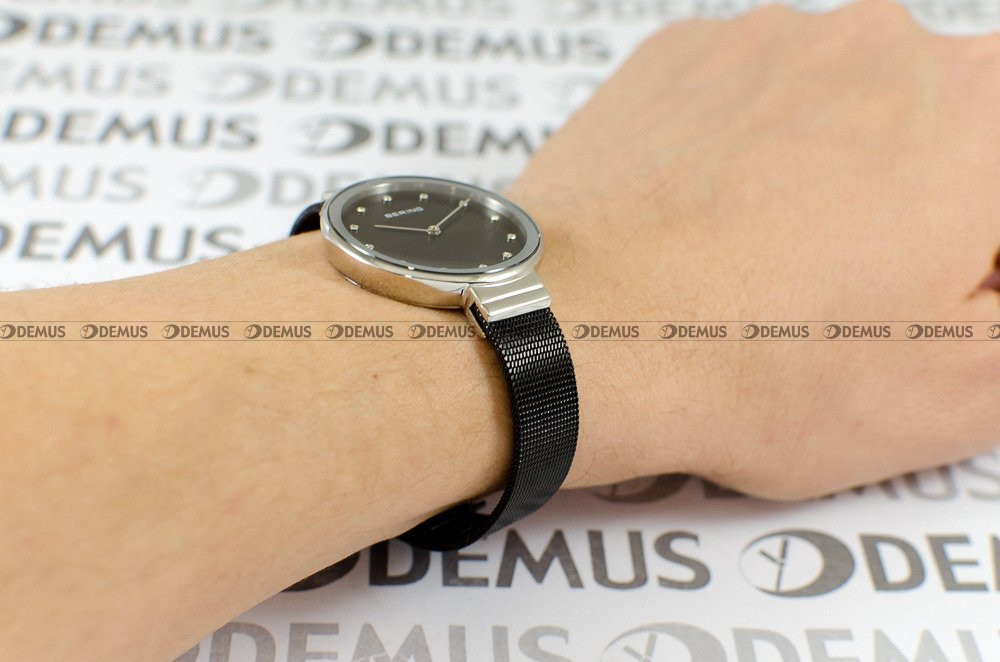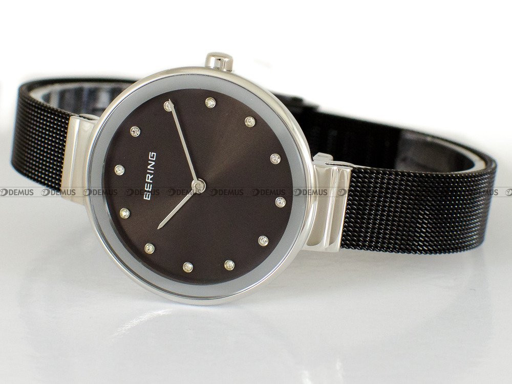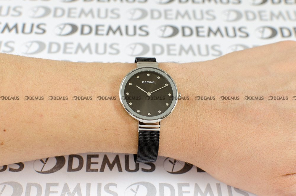Gorąco polecamy wyjątkowy zegarek damski Bering 12034-102 dla Pań, które cenią sobie dodatki z charakterem. Istotnym aspektem decydującym o wyglądzie zegarka jest siateczkowa - Mesh bransoleta. Sercem tego zegarka jest ceniony za niezawodność mechanizm kwarcowy. Okrągła, stalowa koperta to połączenie trwałości, komfortu i najnowszych trendów.Czarna, wskazówkowa tarcza wysadzana kryształkami Swarovskiego doskonale współgra z niezwykłym charakterem tego modelu. Do ochrony tarczy wykorzystano odporne na zarysowania i stłuczenia szkło szafirowe.