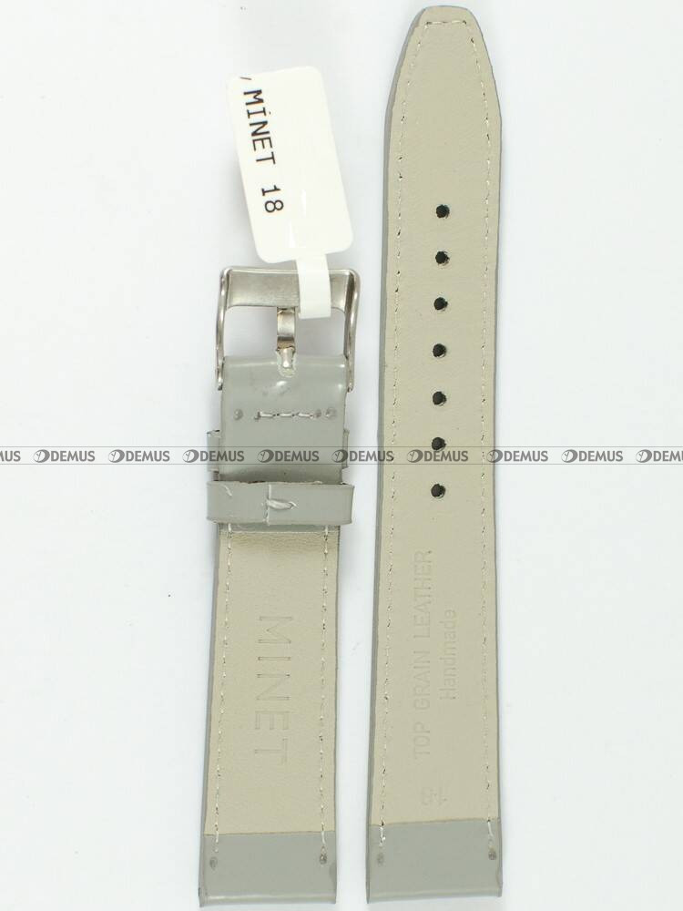 Markowy pasek do zegarka Minet MSOUA18 wykonany z naturalnej skóry. Pasek jest koloru szarego. Długość paska wynosi 16 cm (od klamerki do ostatniego otworu). Istotnym parametrem każdego paska jest jego szerokość, która w przypadku tego modelu wynosi 18 mm (16 mm przy klamerce).Parametry techniczne