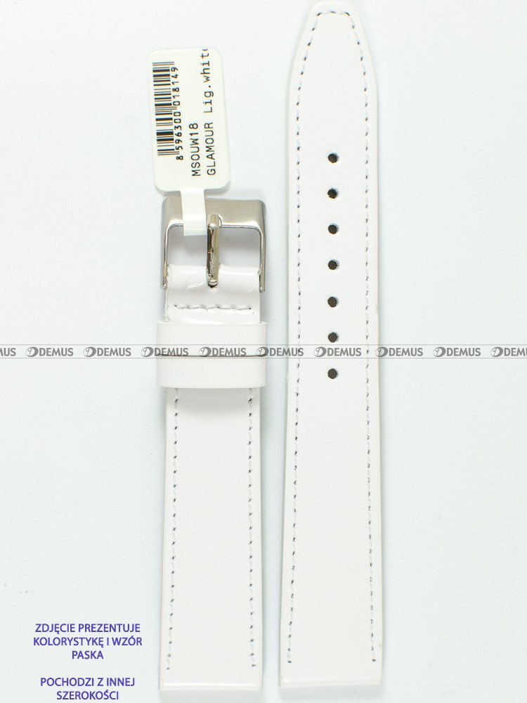Proponujemy Państwu markowy pasek do zegarka Minet MSOUW14, który został wykonany z naturalnej skóry. Prezentowany pasek ma kolor biały. Długość paska to 15 cm (od klamerki do ostatniego otworu). Pasek ma szerokość 14 mm (12 mm przy klamerce).Parametry techniczne