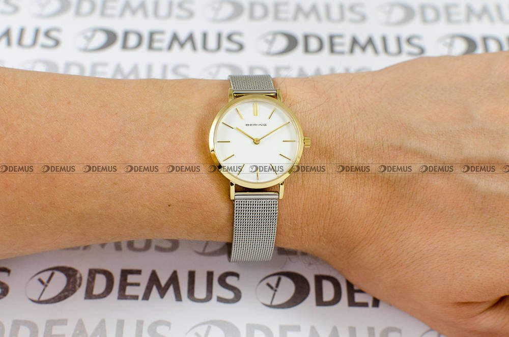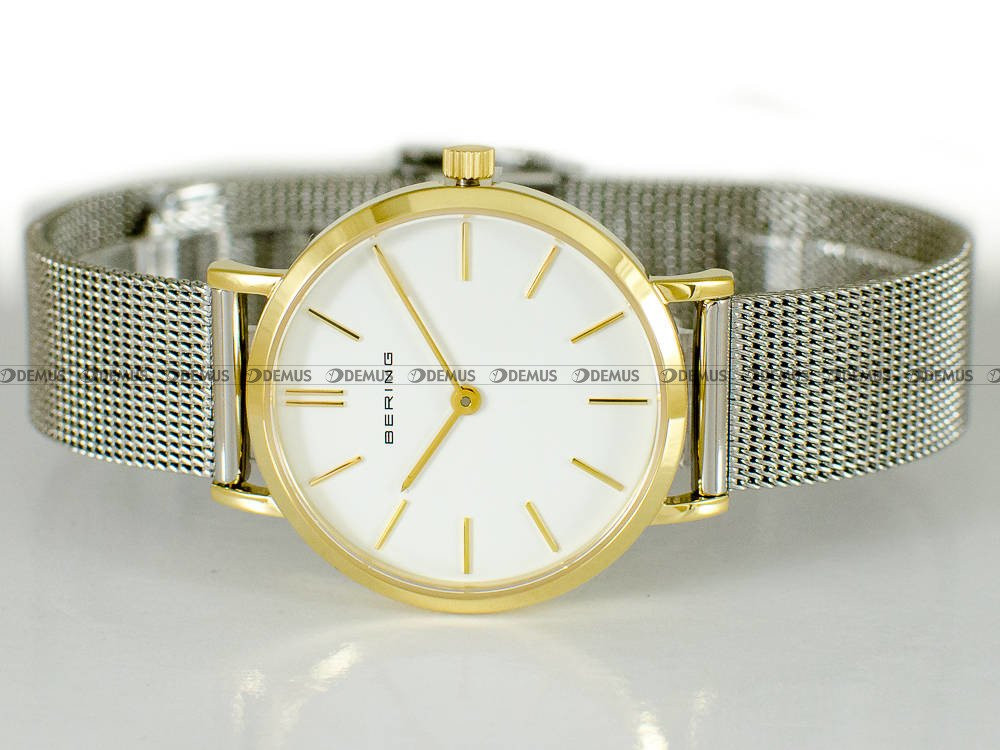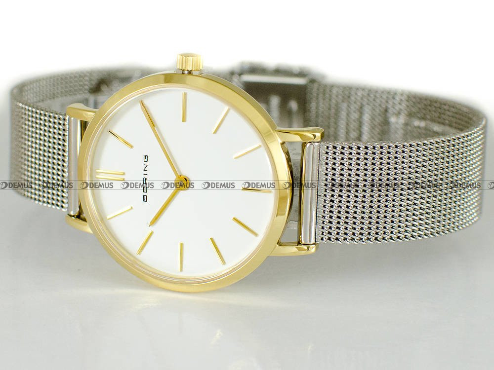 Zachęcamy do zapoznania się z ofertą tego wyjątkowego zegarka - Bering 14129-014 to idealny pomysł na prezent głównie dla Pań, które lubią uzupełnić stylizację atrakcyjnym dodatkiem. O niezwykłym charakterze czasomierza decyduje m.in. siateczkowa - Mesh bransoleta. Sercem tego zegarka jest niezawodny mechanizm kwarcowy. Okrągła, stalowa - pozłacana koperta skutecznie chroni mechanizm i jednocześnie gwarantuje odpowiedni komfort. Klasyczna, wskazówkowa tarcza w kolorze srebrnym podkreśla ekskluzywny charakter tego modelu. Tarcza zegarka jest chroniona przez szkiełko szafirowe, które zapewnia wysoką odporność na zarysowanie i stłuczenie.Parametry techniczne