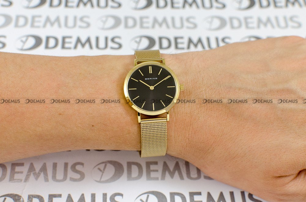 Zachęcamy Państwa do zapoznania się z ofertą tego modelu - Bering 14129-332 to produkt zaprojektowany dla Pań lubiących szykowne dodatki. Istotnym aspektem decydującym o wyglądzie zegarka jest siateczkowa - Mesh, pozłacana bransoleta. Sercem tego zegarka jest niezawodny mechanizm kwarcowy. Okrągła, stalowa - pozłacana koperta skutecznie chroni mechanizm i jednocześnie gwarantuje odpowiedni komfort. Czarna, wskazówkowa tarcza podkreśla ekskluzywny charakter tego modelu. Urządzenie prezentuje czas w tradycyjnej 12-godzinnej formie. Do ochrony tarczy zegarka wykorzystano odporne na zarysowania i stłuczenia szkiełko szafirowe.Parametry techniczne