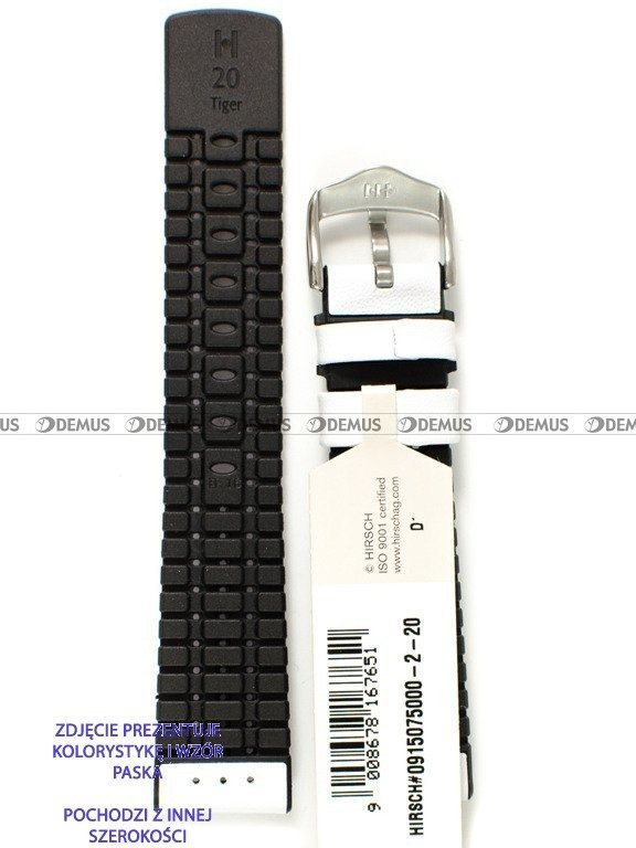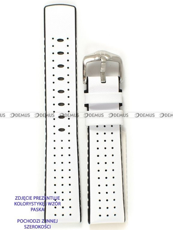 Proponujemy Państwu markowy pasek do zegarka Hirsch 0915075000-2-18 z naturalnego kauczuku i skóry. Pasek ma kolor biały. Pasek ma długość 17,5 cm liczoną od klamerki do ostatniego otworu. Jednym z najważniejszych parametrów paska jest oczywiście jego szerokość, która w tym przypadku wynosi 18 mm (16 mm przy klamerce).Parametry techniczne