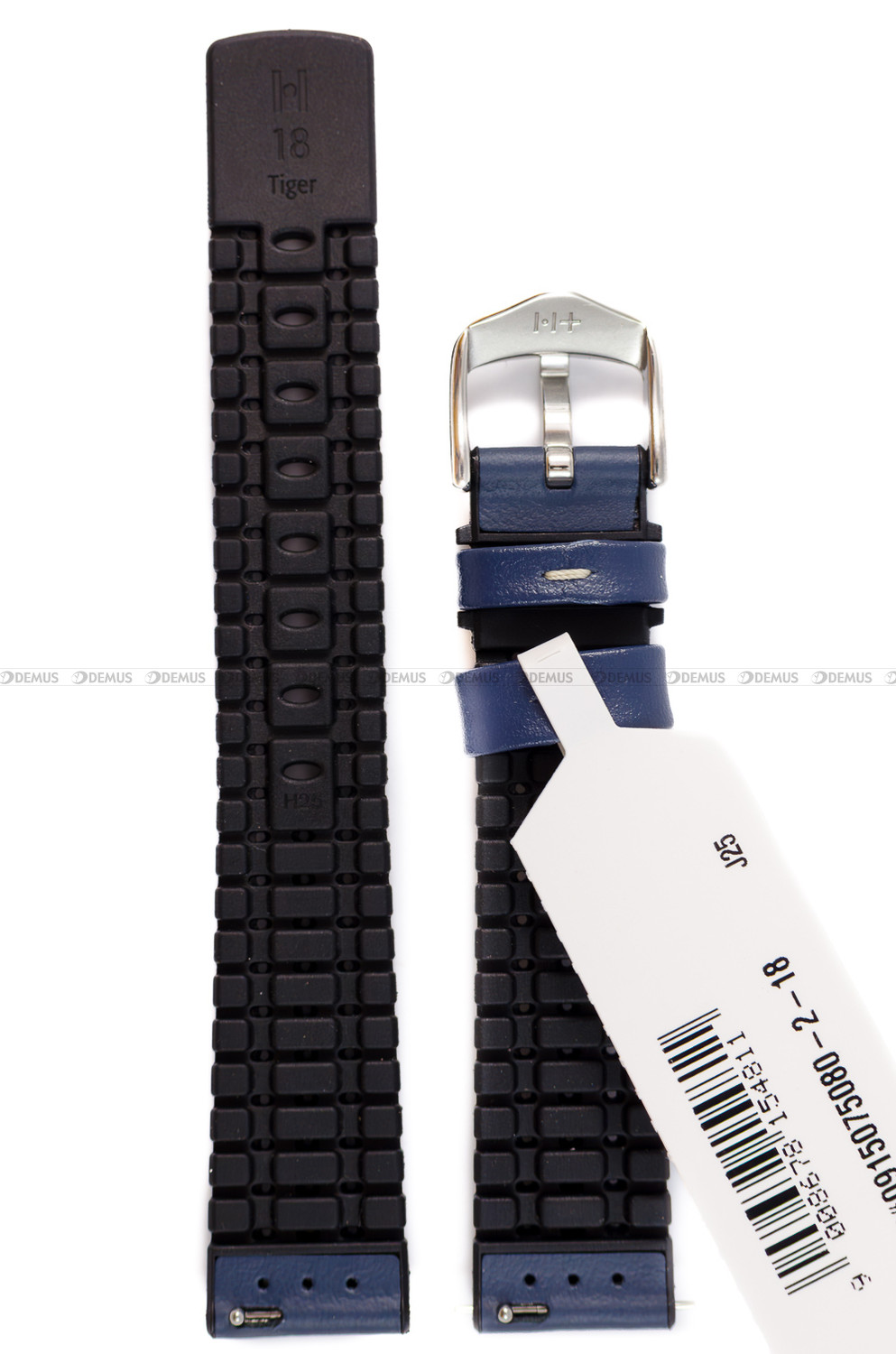 Skórzano-kauczukowy pasek do zegarka Hirsch 0915075080-2-18, 18 mm, Niebieski