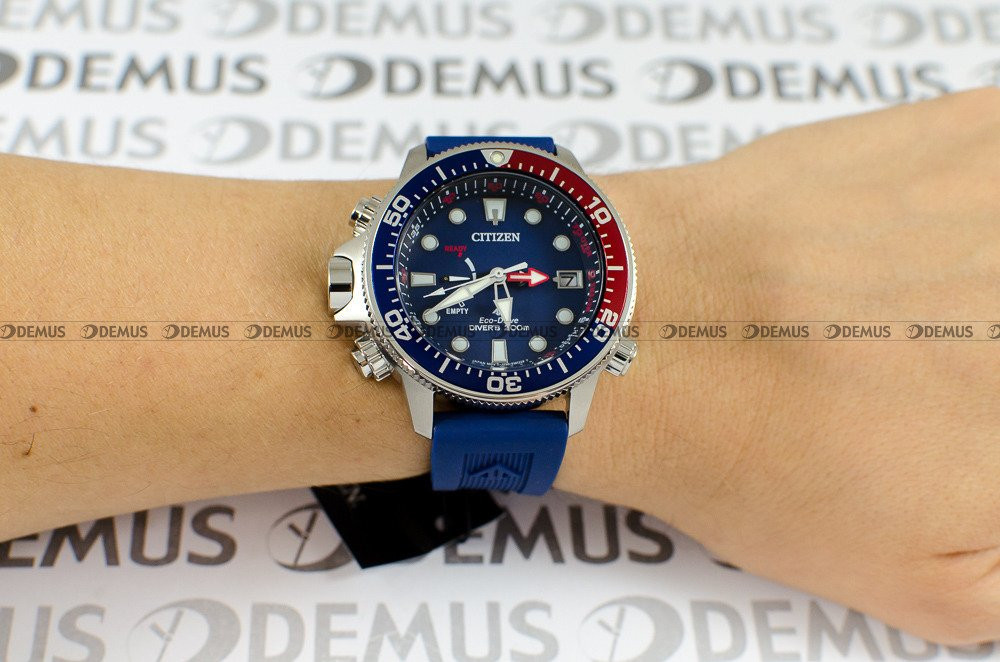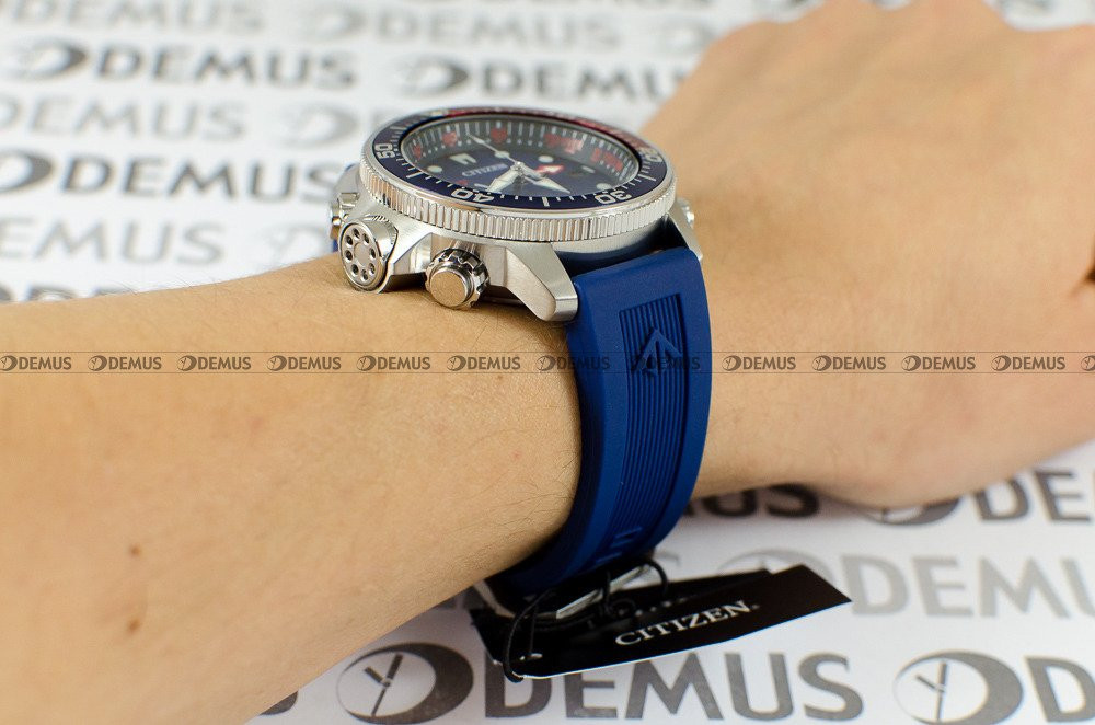 Nowość w ofercie - model Citizen Promaster BN2038-01L to produkt stworzony głównie dla Panów ceniących sobie elegancję i styl. Z niepowtarzalnym stylem tego modelu doskonale współgra poliuretanowy, Przedłużany (Możliwość założenia zegarka na skafander) pasek. Zegarek jest napędzany przez ceniony za niezawodność mechanizm kwarcowy - solar. Okrągła, stalowa koperta to połączenie trwałości, komfortu i najnowszych trendów. Urządzenie zostało dodatkowo uszczelnione za pomocą zakręcanego dekla i zakręcanej koronki. Wysoka jakość urządzenia przekłada się na klasę wodoodporności na poziomie WR200.Niebieska, wskazówkowa tarcza podkreśla ekskluzywny charakter tego modelu. Aktualna godzina jest prezentowana w tradycyjnym, 12-godzinnym trybie. Zegarek został wyposażony w datownik pokazujący aktualny dzień miesiąca. Wskazówki urządzenia zostały pokryte warstwą fosforyzującą LumiBrite ułatwiającą korzystanie z zegarka w ciemności. Tarcza zegarka jest chroniona przez szkło mineralne, które zapewnia wysoką odporność na zarysowanie i stłuczenie.