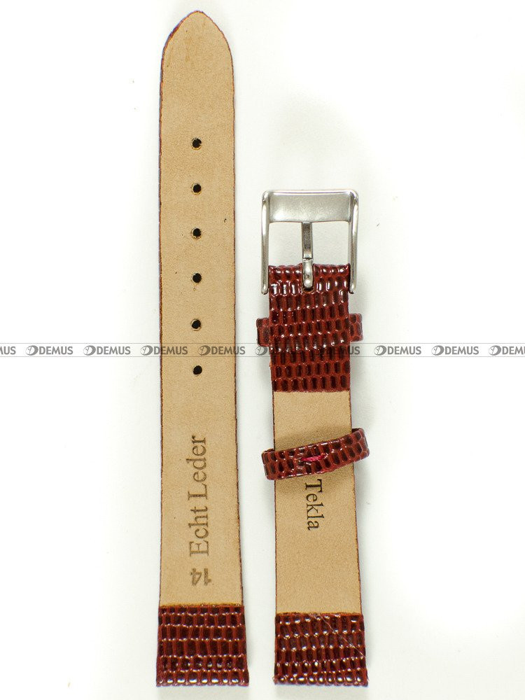 Gorąco polecamy oryginalny pasek do zegarka Tekla PT7.14.41 wykonany z naturalnej skóry. Prezentowany pasek ma kolor bordowy. Pasek ma długość 14,5 cm liczoną od klamerki do ostatniego otworu. Ważną cechą każdego paska jest jego szerokość - w tym przypadku wynosi ona 14 mm (12 mm przy klamerce).Parametry techniczne