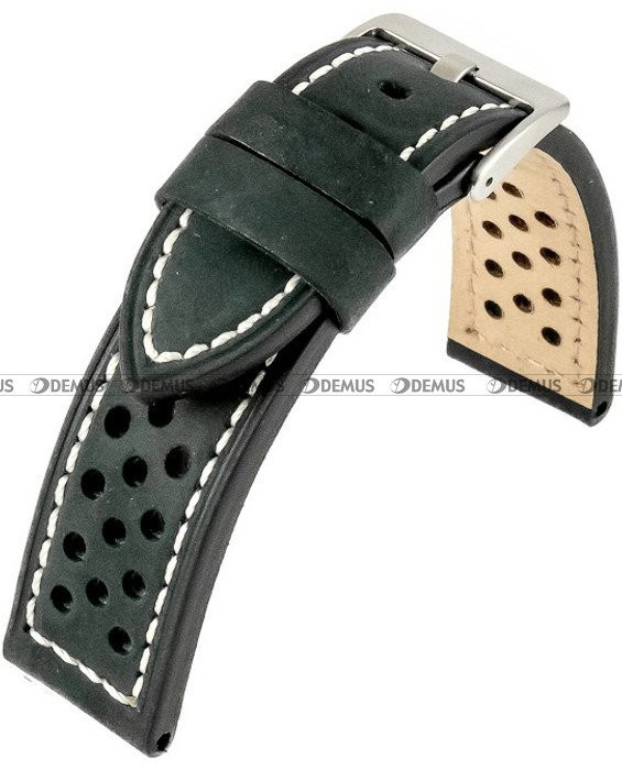 Skórzany pasek do zegarka Horido 9618.01.20S-biała nić, 20 mm, Czarny