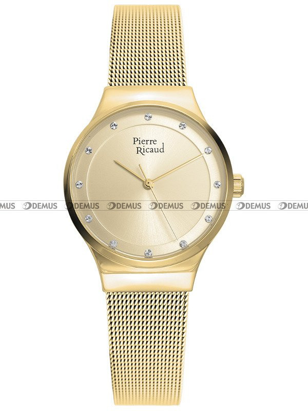 Proponujemy Państwu wyjątkowy zegarek Pierre Ricaud P22038.1141Q dla Pań dbających o każdy aspekt stylizacji. Kluczowym elementem decydującym o wyglądzie urządzenia jest siateczkowa - Mesh, pozłacana bransoleta. Zegarek jest napędzany przez niezawodny mechanizm kwarcowy. Okrągła, stalowa - pozłacana koperta skutecznie chroni mechanizm zegarka, jednocześnie zapewniając odpowiedni komfort. Złota, wskazówkowa tarcza wysadzana kryształkami bardzo dobrze pasuje do całej konstrukcji. Tarcza zegarka jest chroniona przez odporne na zarysowania i stłuczenia szkło mineralne.Parametry techniczne