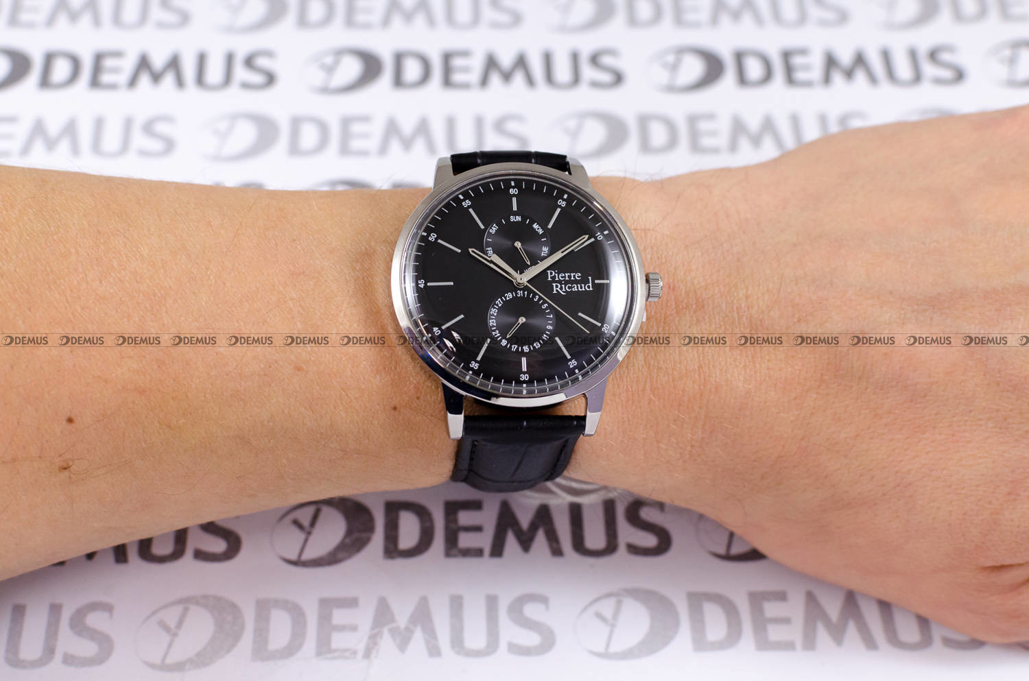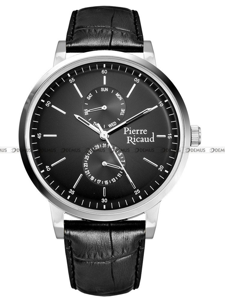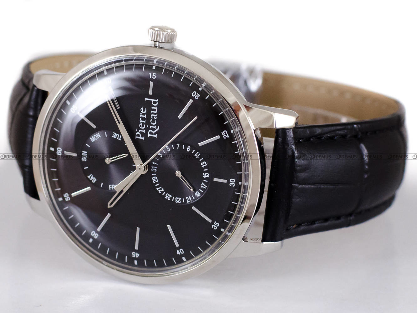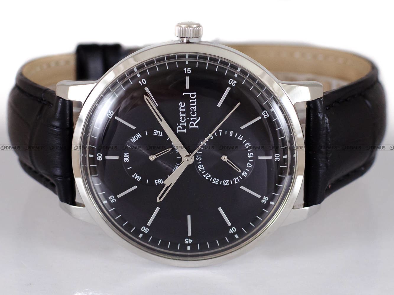 Gorąco polecamy markowy zegarek męski Pierre Ricaud P97256.5214QF dla Panów, którzy cenią sobie dodatki z charakterem. Jednym z ważnych elementów decydujących o wyglądzie zegarka jest skórzany pasek. Sercem tego zegarka jest mechanizm kwarcowy. Okrągła, stalowa koperta to najlepsza gwarancja trwałości tego modelu.Czarna, wskazówkowa tarcza doskonale współgra z niezwykłym charakterem tego modelu. Godzina jest pokazywana w tradycyjnym 12-godzinnym trybie. Zegarek został dodatkowo wyposażony w datownik pokazujący dzień miesiąca i dzień tygodnia. Tarcza zegarka jest chroniona przez odporne na zarysowania i stłuczenia szkiełko mineralne.