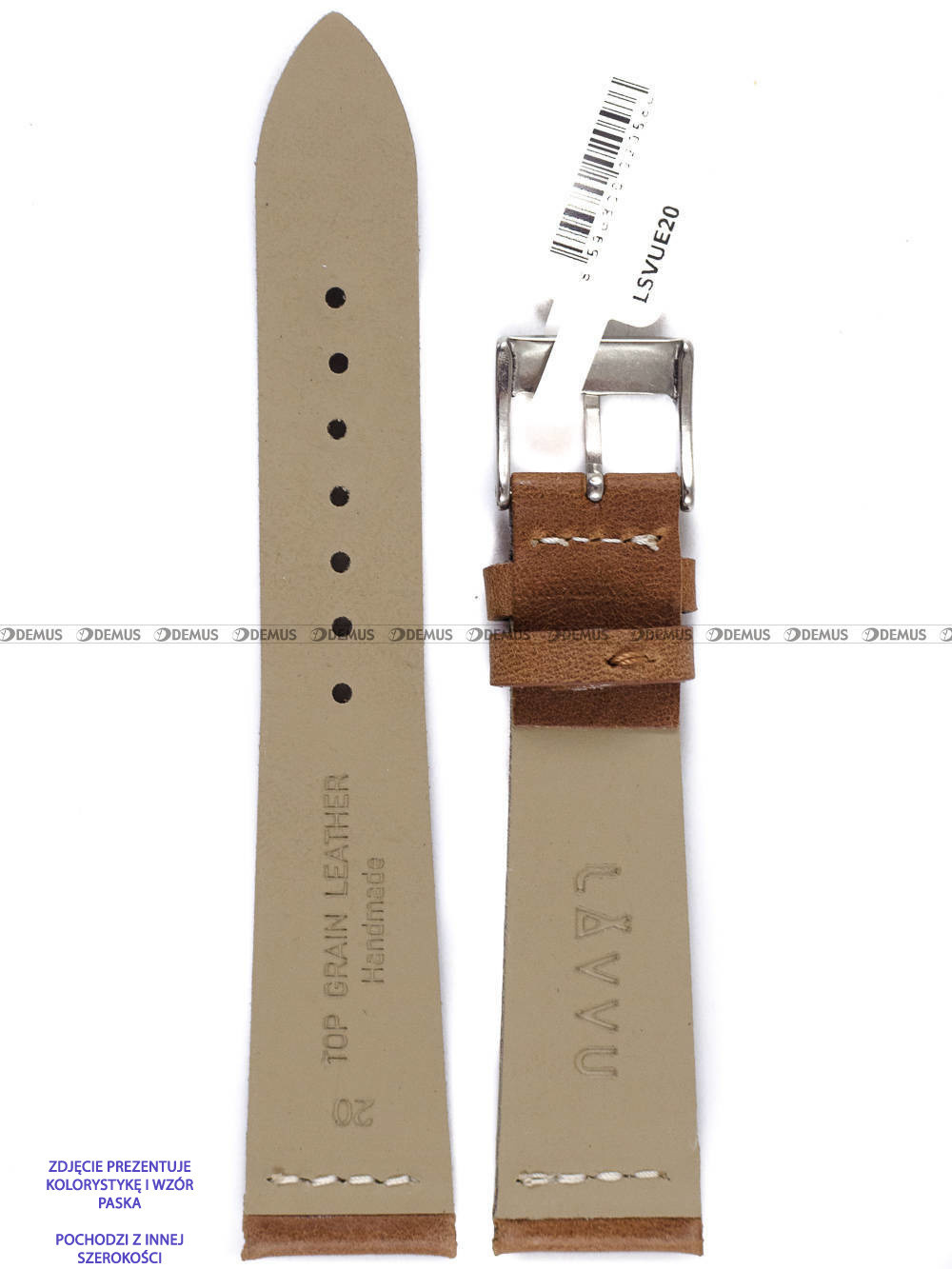 Oryginalny pasek do zegarka LAVVU LSVUE24 wykonany z tradycyjnej, naturalnej skóry. Pasek ma kolor brązowy. Długość paska wynosi 16 cm liczona od klamerki do ostatniego otworu. Ważną cechą każdego paska jest jego szerokość - w tym przypadku wynosi ona 24 mm (20 mm przy klamerce).Parametry techniczne